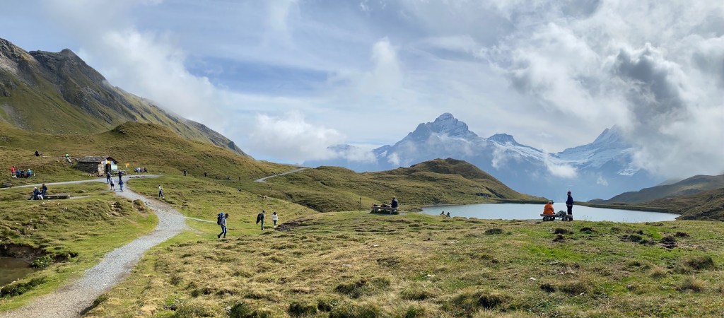 Day hike to Bachalpsee from First (12km round trip, after a long, scenic gondola ride from Grindelwald), one of several hiking options in the region. Bachalpsee was a pretty, lakeside destination with great alpine views, and the “thrill walk” along the cliffs at First was truly thrilling.