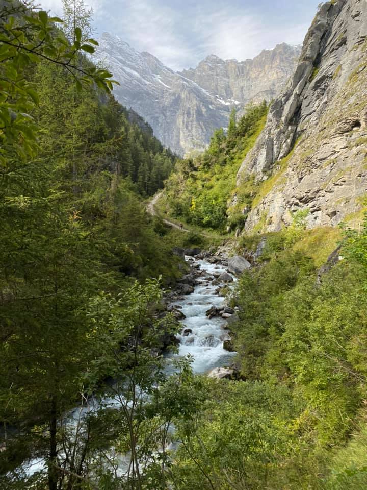 Fantastic day hikes to Chilchbalm (17km round trip from Gimmelwald) and Trachsellauenen (15km out and back from Stechelberg). The former led to a gorgeous canyon head with caves, waterfalls and wildflowers; the latter led to a rustic mountain hut serving hot lunch and schnapps.