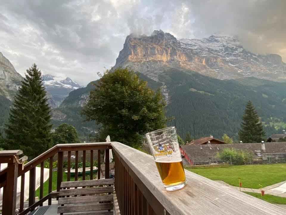 Our lodge in Gimmelwald was fantastic – true Swiss mountain lodging, with drop-dead views, lovely people, good food, and their very own, delicious beer Schwarz Monch!