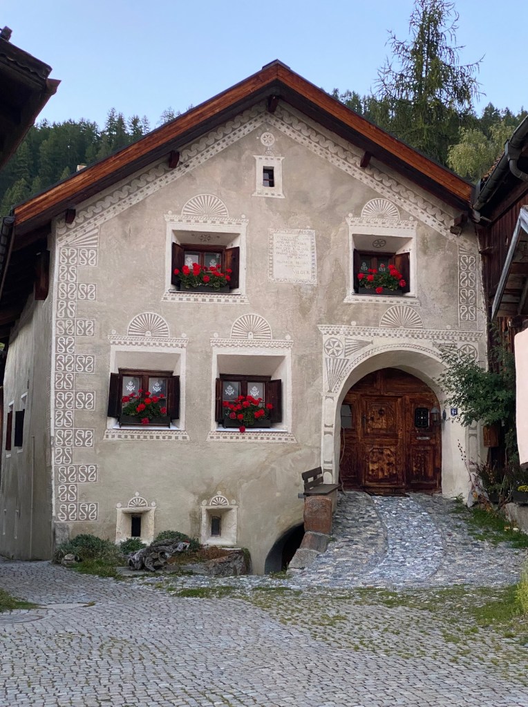 On leaving Lago di Braies, we took a gorgeous drive along the Alpine highway, ultimately climbing Stelvio Pass (another incredibly scenic but white-knuckle drive) into Switzerland’s Graubunden region, through CH’s only national park, to the small, charming Swiss mountain village of Guarda with no plan and no reservations. Romantika is affiliated with the Hotel Meisser, a very nice resort hotel overlooking the mountains and valley below. Great place for a day or two, and more endless hiking options. Highlights: