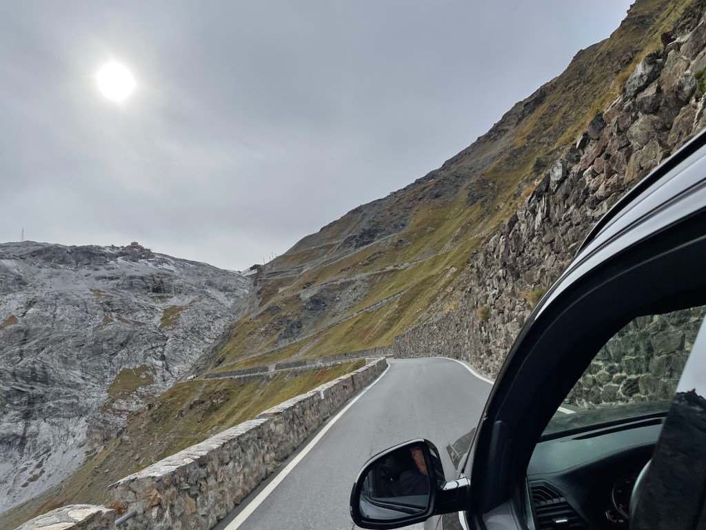 Leaving Slovenia, we drove from Slovenia into Italy via a mountain pass near Učja, a spectacular drive that included a 15km, one way, white-knuckle cliffside road that that Emily called the most terrifying road she’s ever traveled, including the infamous Death Road in Bolivia! After the pass, lunch in any small mountain village will do just fine.