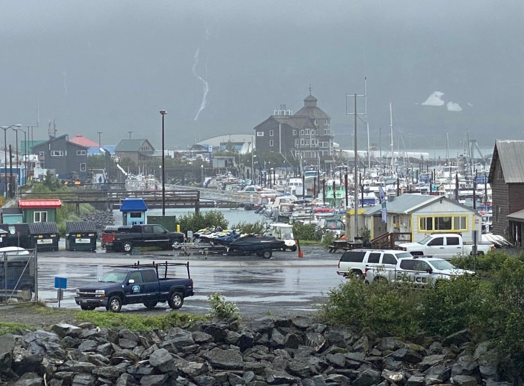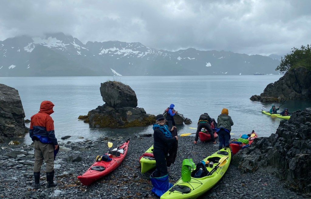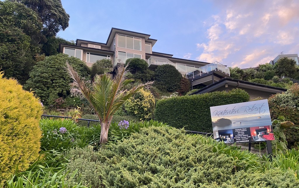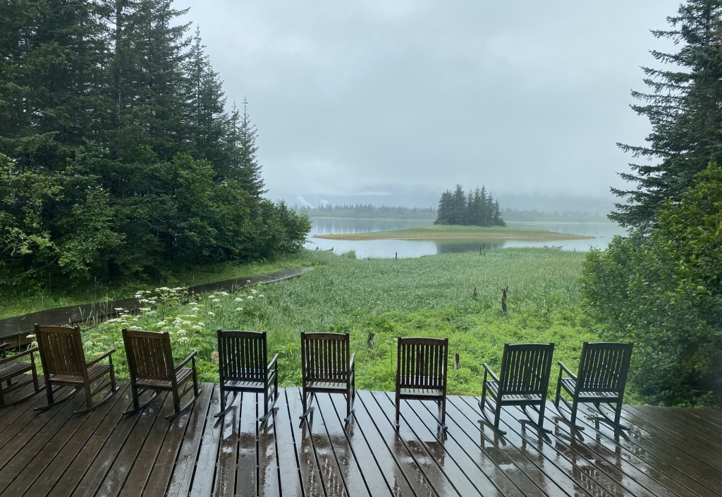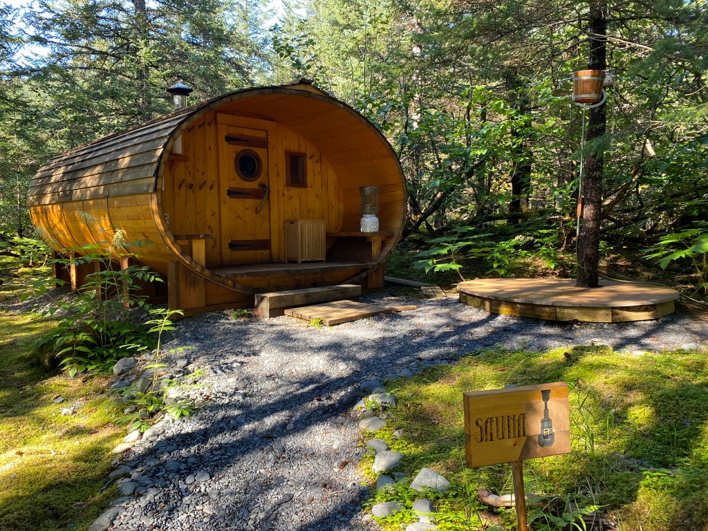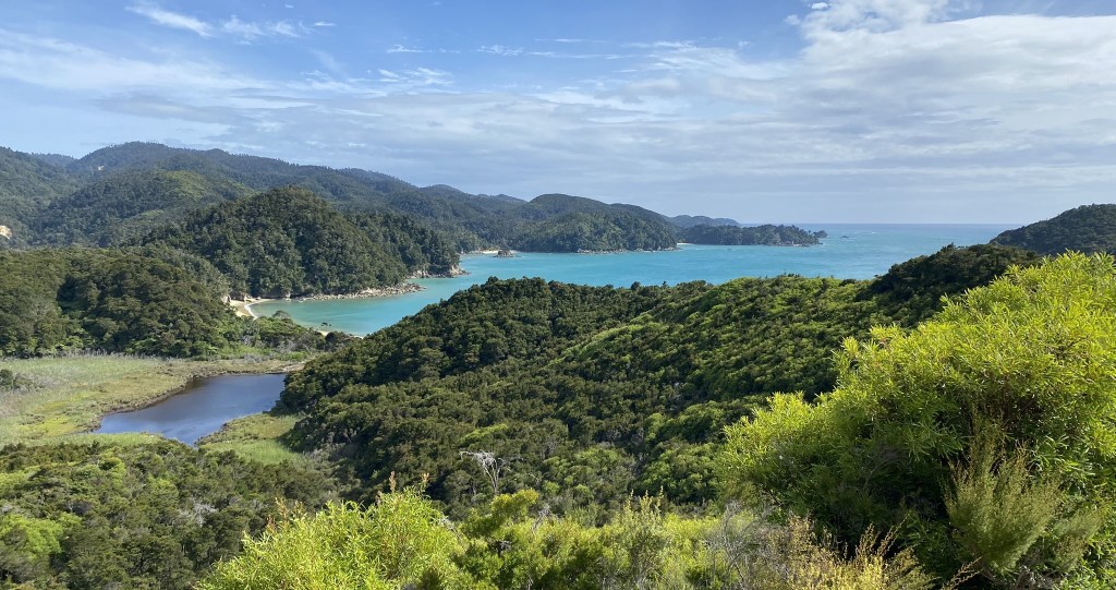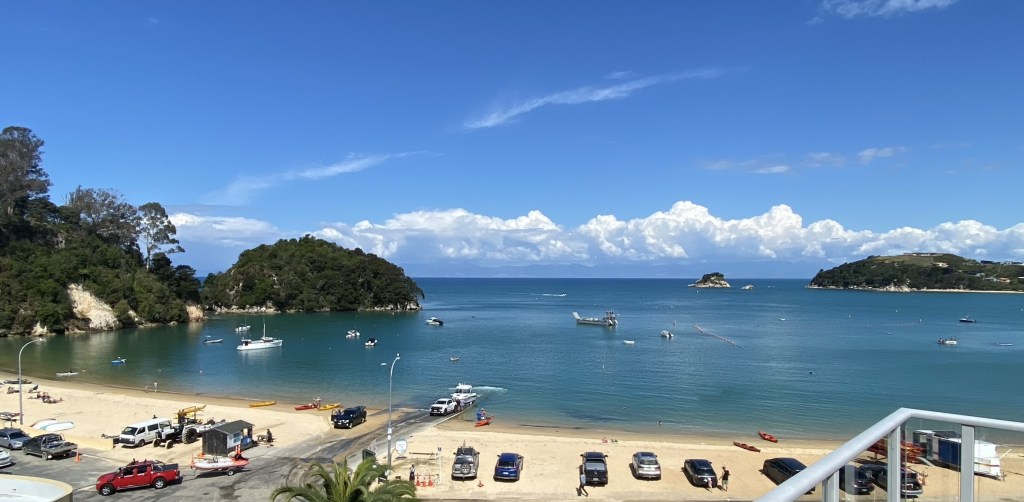 Looking over Snellings Beach from the back deck of our Wander Pod