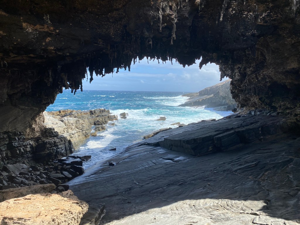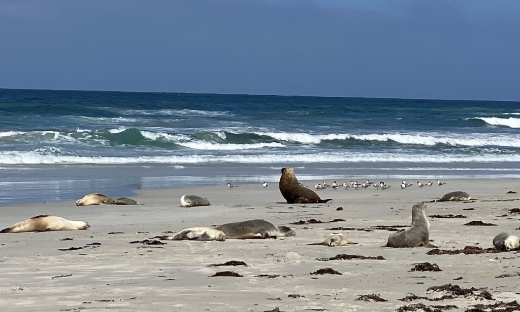 Visiting Flinders Chase National Park was a great way to spend a day. You don’t need a guide for this. While much of the forested park is still closed due to bushfire recovery, it is easy to find two major landmarks, both worth visiting: Admirals Arch and the Remarkable Rocks.