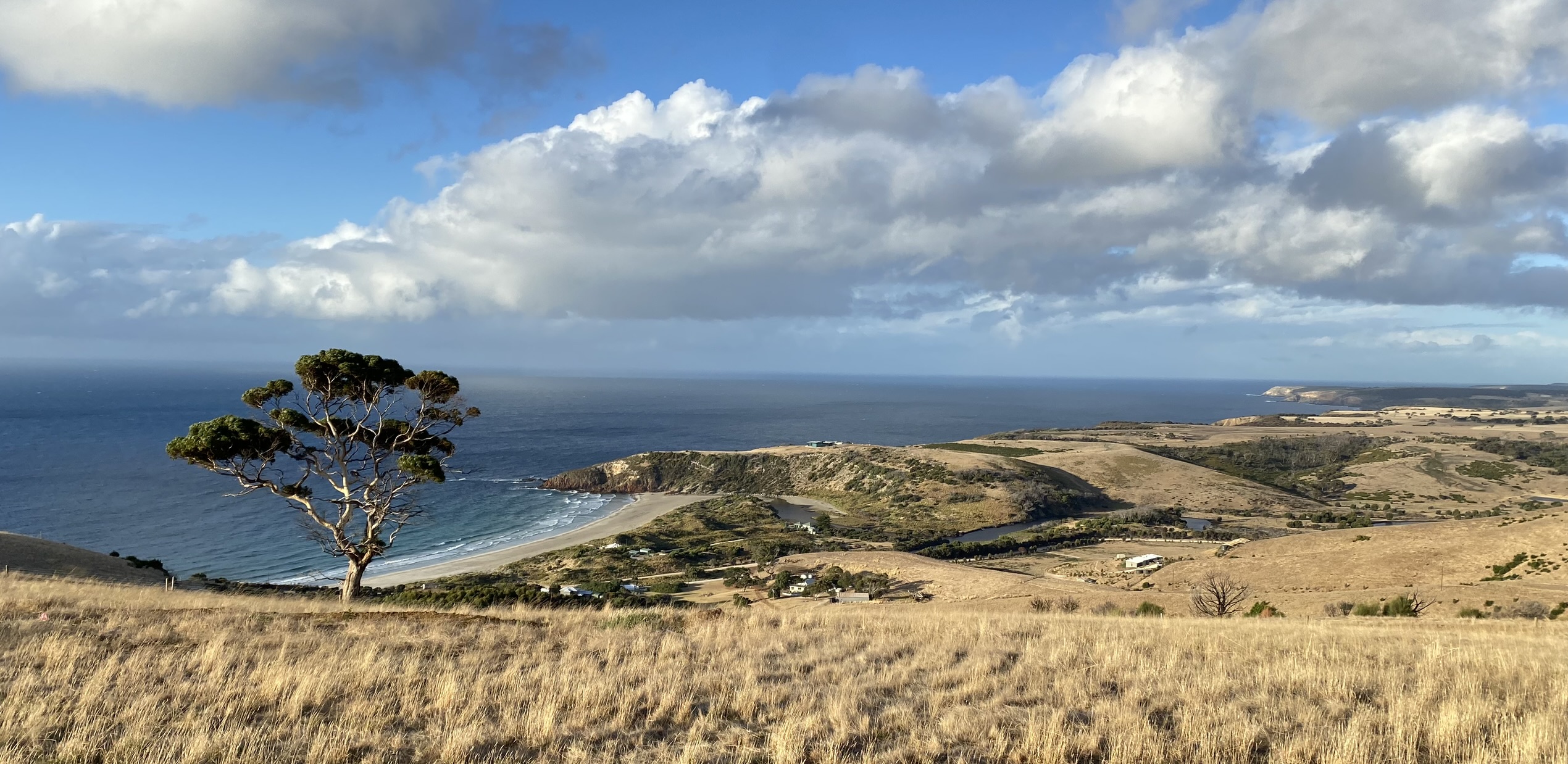 After fun in the big city, it was time to go remote again and KI definitely fit the bill. Flying from Melbourne to Adelaide, we picked up our rental car at the airport and made tracks for the Port Jervis ferry terminal, a two-hour drive. Our ferry took us to Kangaroo Island, where another two-hour drive across desolate roads and wild countryside brought us to our Wander Pod, high on a hillside overlooking Snellings Beach on the island’s wild north coast.