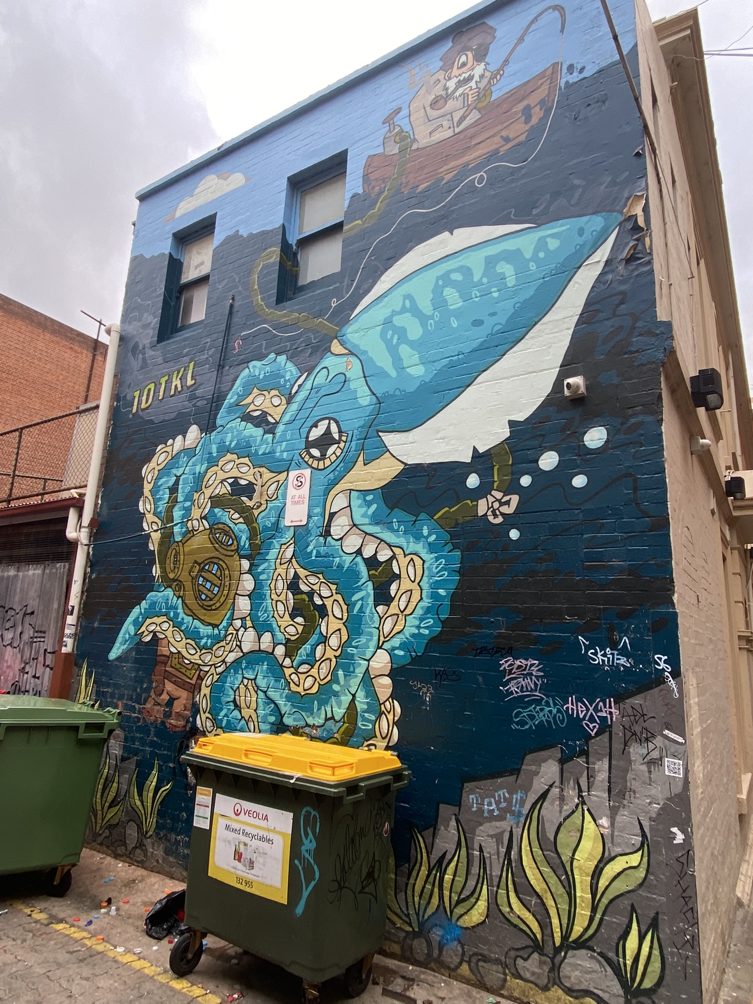 Street art, mostly wild murals covering entire walls in the famous lanes and back alleys, is quite impressive. AC/DC lane was my favorite, but there were several other well-known lanes worth checking out, too.
