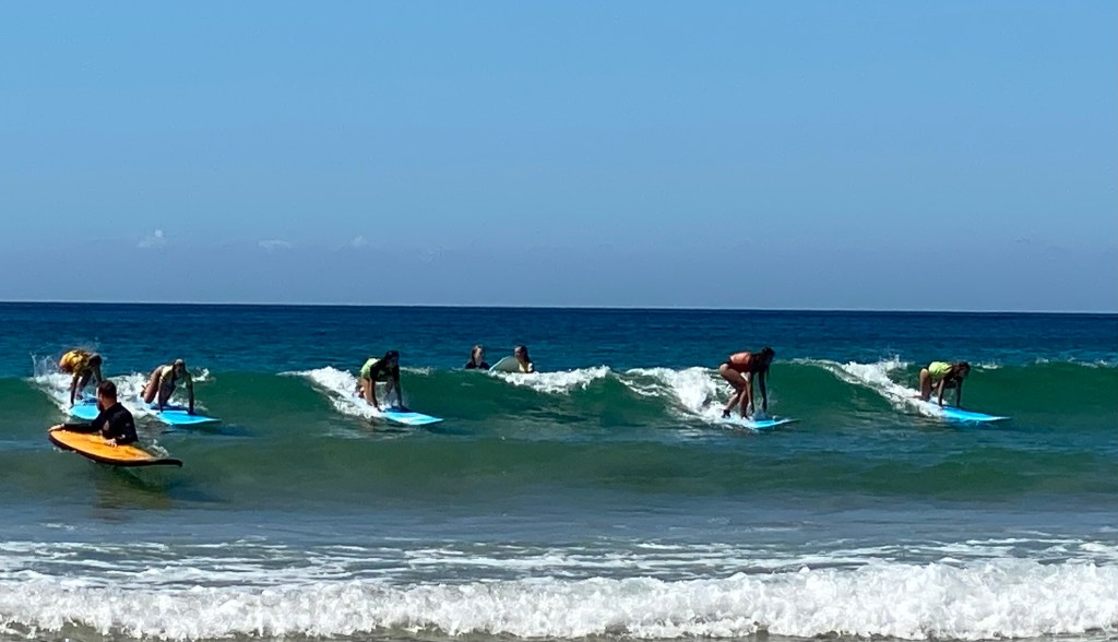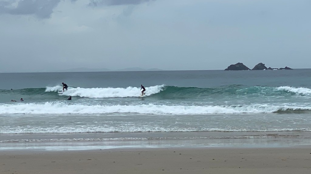 Wategos Beach, tucked under the tree-covered cliffs, was our favorite in the area for hanging out and watching the surfers.